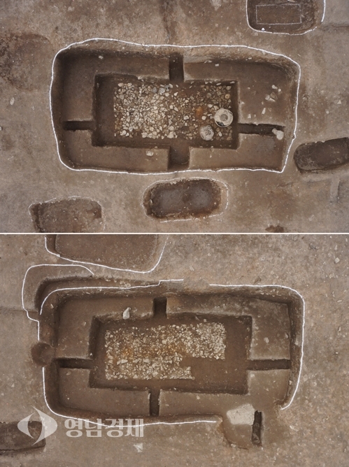 조사단은 "유구는 모두 도굴돼 토기, 철기 대부분이 도굴을 위해 뚫은 구멍인 도굴갱에서 출토됐다"며 "바닥 시상석(屍床石)에서는 고배(高杯·굽다리접시), 단경호(短頸壺·목짧은항아리), 장경호(長頸壺·목긴항아리), 철촉, 꺾쇠 등 일부만 남았다"고 설명했다.