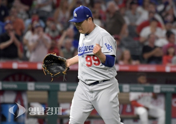 류현진은 11일(한국시간) 미국 캘리포니아주 애너하임의 에인절스타디움에서 열린 2019 미국프로야구 메이저리그 에인절스와의 방문경기에 선발 등판해 6이닝을 1실점으로 막았다.