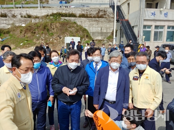 이날 이낙연 당대표와 장세호 경북도당위원장 일행은 이철우 경북도지사, 전찬걸 울진군수, 이희진 영덕군수 등 관계 공무원들과 울진 연내항과 영덕 강구면 일대를 점검하고 재난지역 선포에 따른 후속조처와 복구에 필요한 대책을 논의했다.