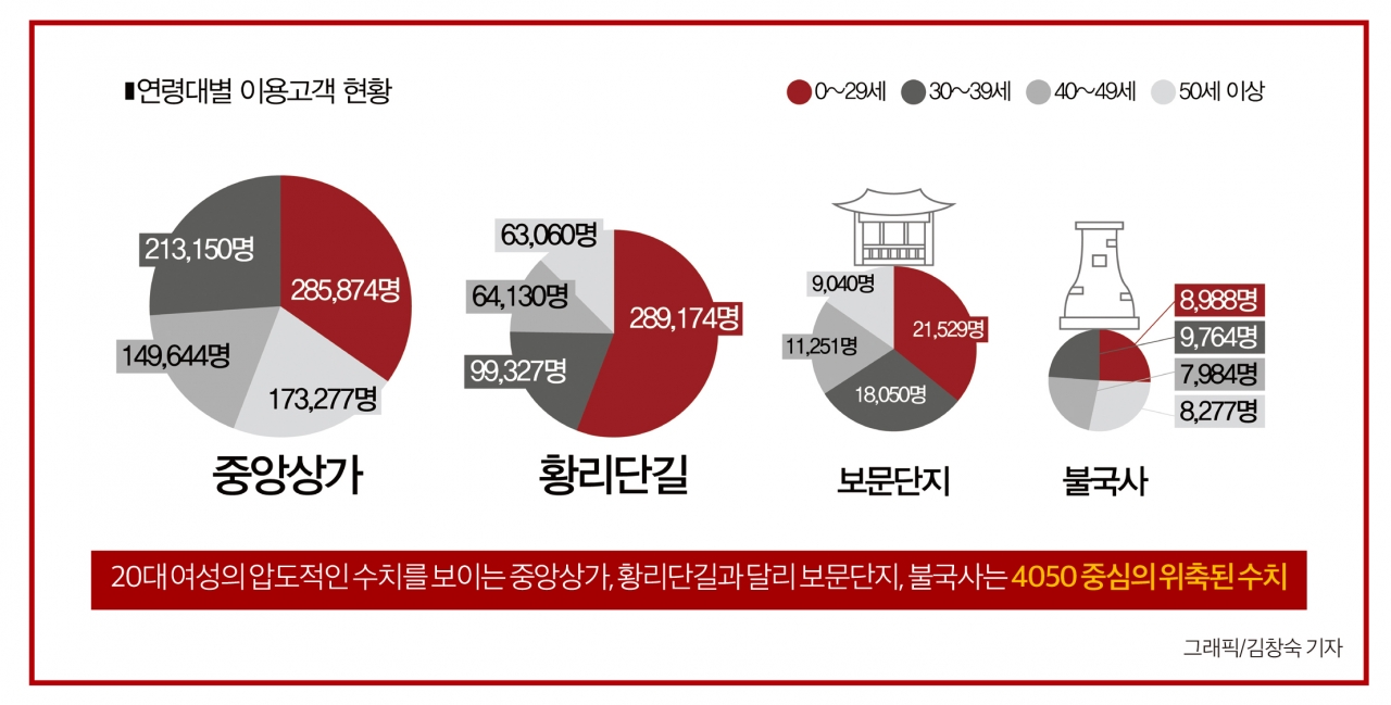 본지가 KB부동산 리브온과 한국감정원 상권동향을 분석한 결과 경주 관광은 20대가 주도하고 30대가 가세하는 양상을 보이고 있다.