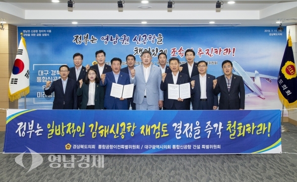 11일 경상북도의회 통합공항이전특별위원회와 대구시의회 통합신공항 건설 특별위원회는 경상북도의회에서 김해신공항 재검토 방침 즉각 철회를 요구하는 성명서를 공동으로 발표했다.