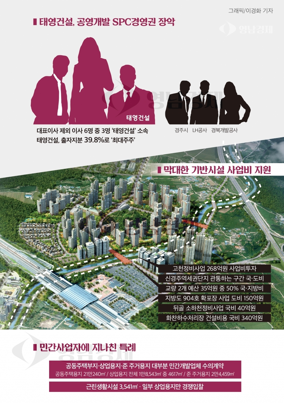 관련기사 [기획 특집] 신경주역세세권 공영개발을 진단한다 [심층 취재] 신경주 역세권(下)...태영건설 종속회사로 전락한 공영개발 SPC 신경주역세권개발사업 공익성은 보이지 않고 변칙개발 우려된다