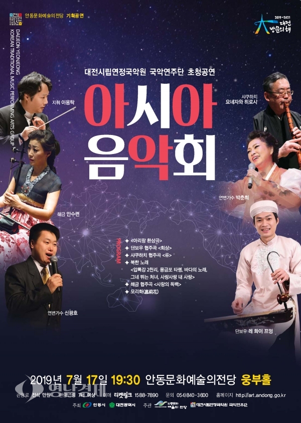 대전시립연정국악원 국악연주단 초청 ‘아시아 음악회’는 7세 이상 관람이 가능하며 관람료 전석 1만 원이다.