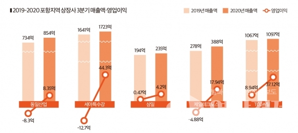 포항지역 상장사 대부분이 2분기에 이어 3분기도 좀처럼 코로나19의 여파를 벗어나지 못하고 실적 악화가 계속 이어지는 등 고전을 면치 못하고 있다.