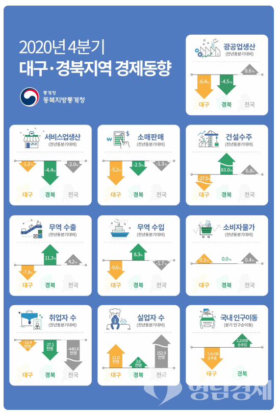 한편 인구이동에 있어서는 지난해 4분기는 대구지역은 순유출이, 경북은 순유입이 발생했다.