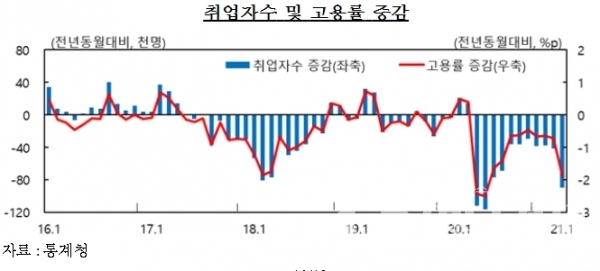 한편 전국의 취업자수는 지난해 1월 2680만명에서 올해 1월 2581만8천명으로 98만2천명이 감소한 것으로 조사됐다.