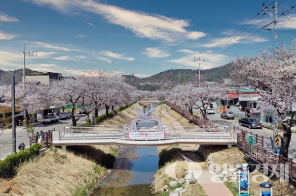 수달이 살고 있을 만큼 깨끗한 모전천 양 옆으로 핀 벚나무가 천을 따라 찬란한 핑크빛 벚꽃 로드를 만든다.