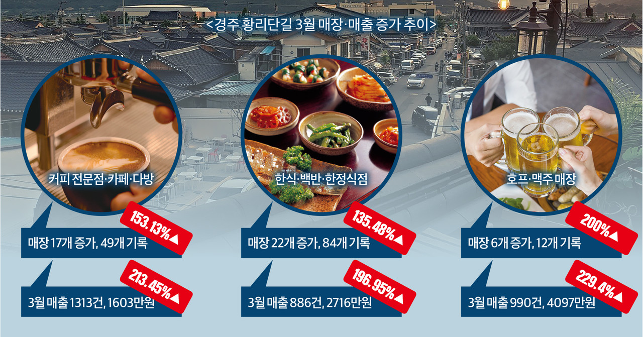 매력을 잃어가고 있는 것으로 우려됐던 경주 황리단길이 올해 들어 점포수는 물론 매출도 잇달아 올라가는 것으로 나타났다.