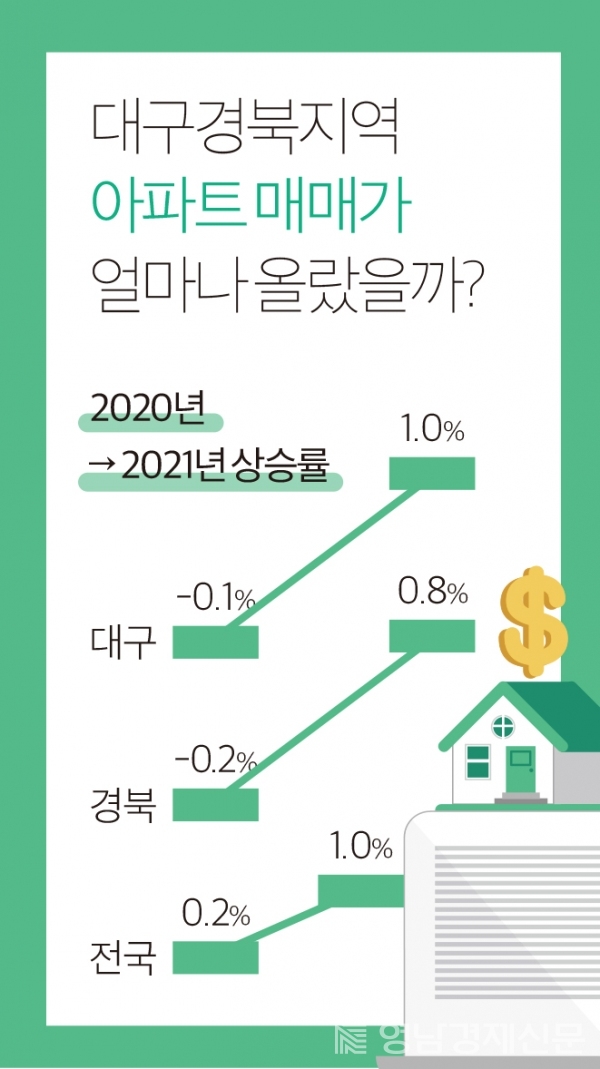 아파트 매매가격은 대구와 경북 각각 1.0%, 0.8% 상승
