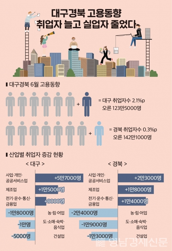 대구의 6월 실업자 수는 5만명으로 전년동월대비 6000명(10.5%) 크게 감소했다.