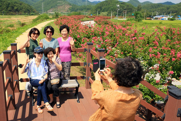 요즘 울진군 곳곳에 백일홍 꽃길이 만개해 관광객들의 눈길을 사로잡으며 추억의 장면이 연출되고 있다.