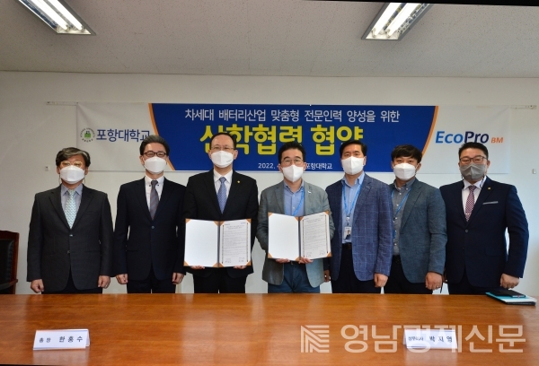 협약식은 20일 경북 포항 소재의 포항대학교에서 에코프로BM 박지영 상무이사와 포항대학교 한홍수 총장을 비롯해 주요 관계자들이 참가한 가운데 진행됐다.