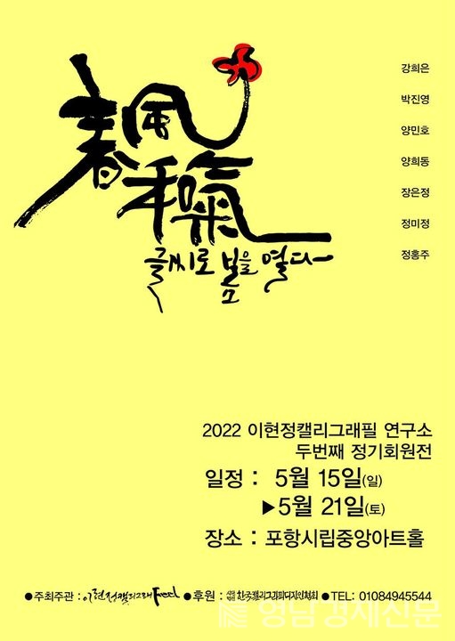 고운이현정캘리그래FeeL 연구소장 이현정 작가는 오는 15일부터 21일까지 7일간 포항시립중앙아트홀에서 정기전을 진행한다.