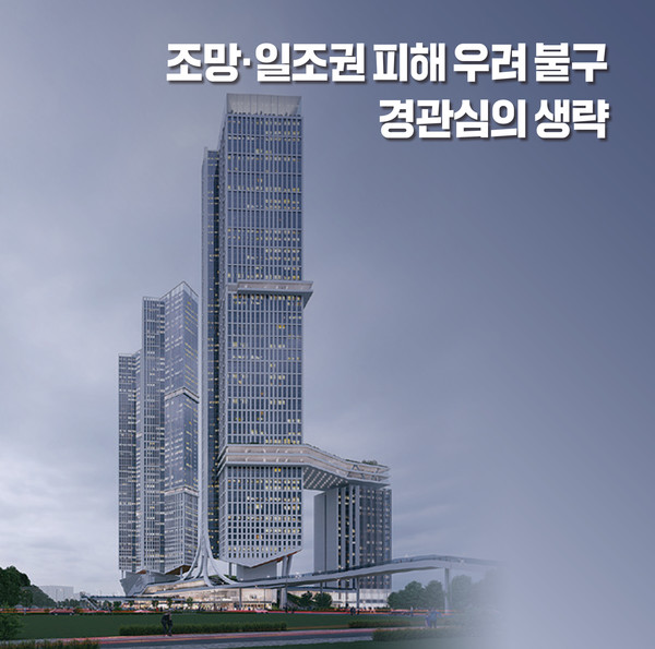 사업자 측이 제출한 경관·스카이라인 시뮬레이션 등 경관성 검토서가 사업자 편의에 따라 임의로 작성됐다는 지적이 나오고 있다. 조망권 분석의 경우 사업자에 유리한 측면이 강조되고 불리한 측면은 제외했다는 것이다.