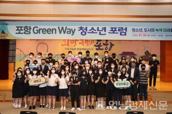 포항시, 100여명의 청소년·전문가·시민이 함께 한 그린웨이 청소년 포럼 성료…청소년 발제, ‘녹색·문화도시를 중심으로 정주 환경을 합한 도시’ 제안…송도 솔밭, 포항 철길숲...포항 그린웨이의 미래에 대한 제안과 토론…이강덕 시장 “청소년의 목소리에 귀 기울여 녹지정책에 반영할 것” 약속