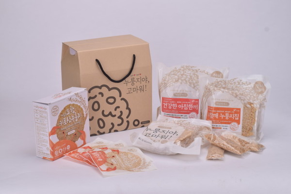 이렇게 만든 누룽지는 얇고 부드러워 끓이지 않아도 스낵으로 먹기 좋고, 밥에 물을 섞지 않고 가마솥 방식으로 구워 누룽지의 깊은 맛을 느낄 수 있다. 또 특허 받은 특별한 방식으로 키토산 누룽지를 만든다.