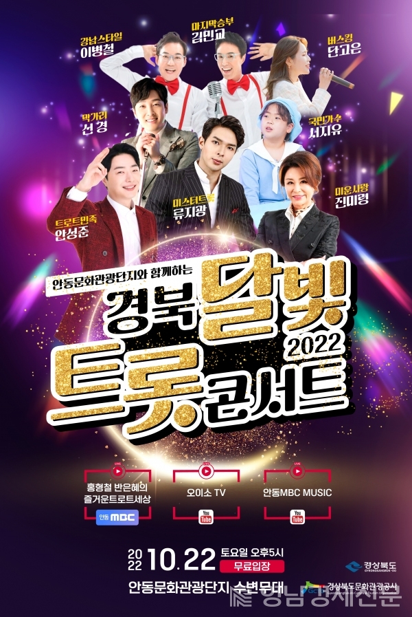 경북도와 경북문화관광공사는 이달 22일 오후 5시에 안동문화관광단지에서 1000여 명의 관객과 함께 '경북 달빛 트로트 콘서트'를 개최한다.