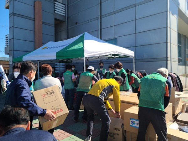 여성가족과는 대송면 다목적복지회관 임시구호소 지원업무 등을, 교육청소년과는 의연품의 배부 업무 등을 수행하고 있다.