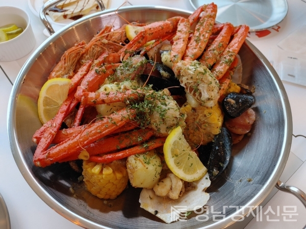 먼저, 후포 토박이라는 한 주인장이 야심차게 내놓은 붉은대게찜이 있다. 최근 유행하는 미국식 봉지해물찜을 연상케 하는 이 메뉴는 붉은대게에 홍합, 새우, 가리비, 소시지 등을 푸짐하게 넣어 양념을 가미한 요리다.