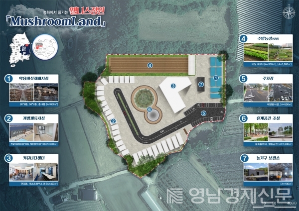 봉화군은 ‘봉화에서 즐기는 웰니스 정원, MushroomLand’라는 테마로 물야면 북지리 일원에 약 2만5천㎡ 부지에 44억 원을 투입해 도시민의 수요에 맞춘 15동의 개별체류시설과 온 가족이 즐길 수 있는 주말농장, 전 세대가 어울릴 수 있는 휴식공간과 커뮤니티센터, 지역특색을 살린 버섯재배시설 등을 조성할 예정이다.
