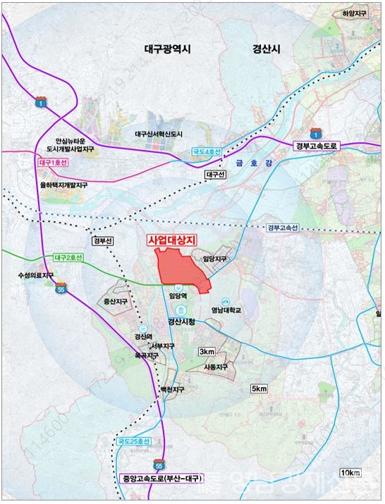 한편 경산대임 공공주택지구는 대구도시철도 2호선 임당역·영남대역과 인접한 더블 역세권 지역으로 달구벌대로와 이어지는 대학로와 수성IC·경산IC와 가까워 우수한 교통편의를 제공한다.