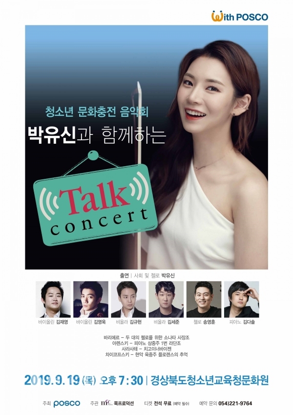 포스코가 가을의 문턱에서 낭만과 해설이 있는 클래식 공연을 준비했다. 오는 9월 18일과 19일 양일간 저녁 7시 30분에 각각 효자아트홀과 경북도교육청문화원에서 ‘첼리스트 박유신과 함께하는 토크 콘서트’를 연다.