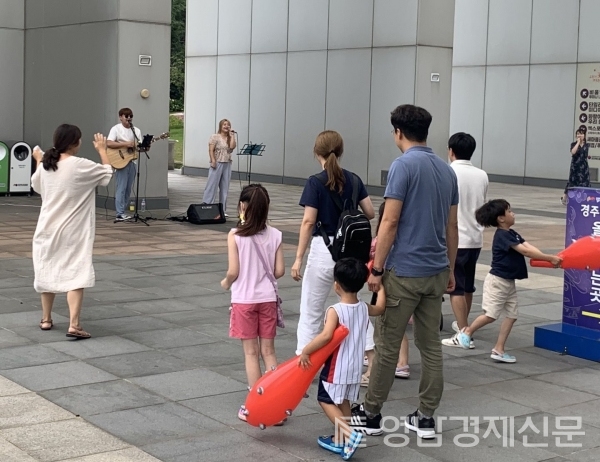 경상북도문화관광공사(이하 공사)가 경주엑스포대공원 관람객들에게 다양한 공연 관람의 기회를 제공하기 위해 마련한 버스킹(거리공연)이 좋은 반응을 얻고 있다.