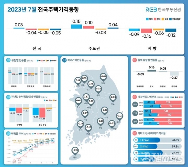 부동산원 '7월 전국주택가격동향조사' 수도권 상승 견인…지방 하락폭 축소