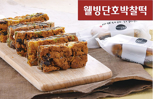‘웰빙단호박찰떡’은 국내산 찹쌀에 국내산 단호박을 섞어 호박의 부르더움과 영양을 가득 담았다.