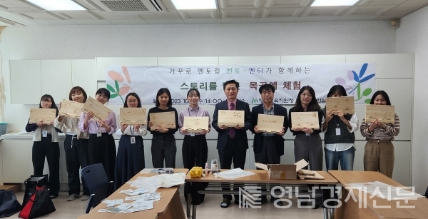 영주교육지원청은 지난 4일 조직 내 세대간 소통을 위해 MZ세대 젊은 직원 11명을 멘토로, 교육장·행정지원과장·교육지원과장을 멘티로 거꾸로 멘토링 멘토-멘티가 함께하는 ‘스토리를 담은 목공체험’을 실시했다.
