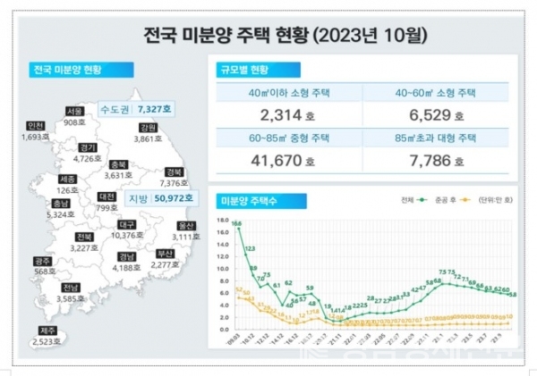 국토부는 지난달 30일 10월 주택 통계를 발표하며 지역별 미분양 현황을 공개했다.