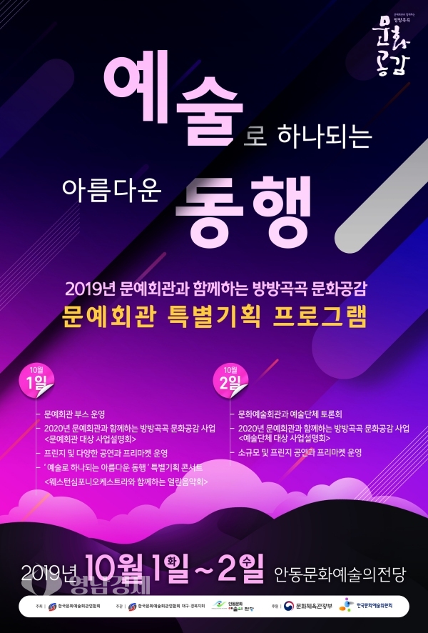 한편, 안동문화예술의전당은 엄격한 심사를 거쳐 올해 전국단위 방방곡곡문화공감 특별프로그램에 전국공연장 중 유일하게 선정, 사업비 2억을 확보해 이번 행사를 진행했다. 지난해는 전국단위 문화예술교육 축제와 전국단위 문화가 있는 날 공연을 진행하는 등 대규모 행사를 성공적으로 개최했다.