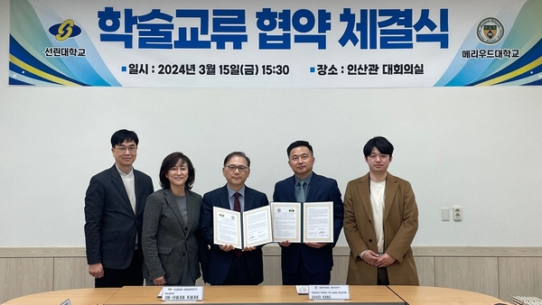 선린대학교(곽진환 총장)는 미국 메리우드대학교와 지난 15일 16시 선린대학교 인산관 1층 대회의실에서 교육 경쟁력을 강화하고 글로벌 인재양성을 위해 학술교류협정 체결식을 진행했다.