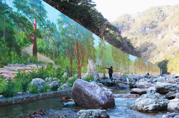 신선계곡에 들어서면 깊은 산속에 보기 힘든 웅장한 벽화를 만날 수 있다. 울진 금장광산의 광물찌꺼기 유실 방지 사업으로 세워진 콘크리트 벽에 울진 금강송을 테마로 그려진 벽화이다.