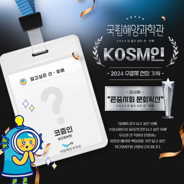 국립해양과학관(관장 김외철, 이하 과학관)은 직장 내 건강한 조직문화 형성을 위해 전 직원 대상 ‘닮고 싶은 KOSM인’을 선발해 연말 시상식을 개최한다고 29일 밝혔다.