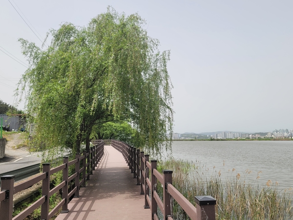 이런 저수지를 포항시가 지난 2020년부터 2023년까지 3년의 사업기간을 들여 저수지 둘레 3.2㎞를 데크로드 설치와 맨발걷기가 가능하게 주변을 개선하고 세족시설을 설치하는 등 시민들의 발걸음을 재촉하고 있다.