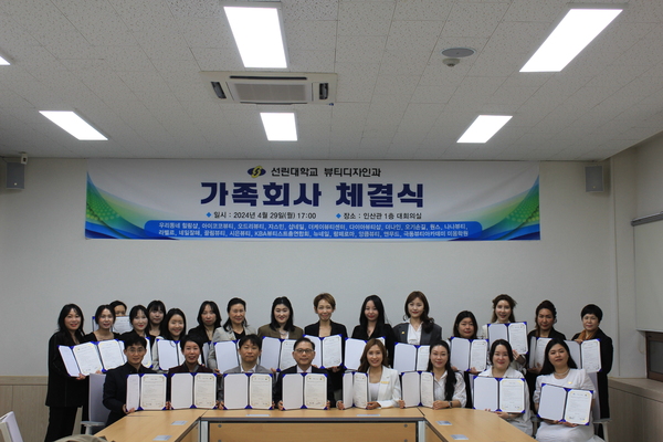선린대학교(총장 곽진환) 뷰티디자인과는 지난달 29일 인산관 1층 대회의실에서 KBA뷰티스트총연합회, 라벨르, 샵네일 등 21개 뷰티산업체와 가족회사협약체결식을 가졌다.
