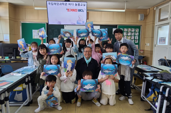 김외철 관장은 부구초등학교를 방문해 일일교사로서 21명의 1학년 학생들에게 ‘해양환경 보호’를 주제로 수업을 진행했다.