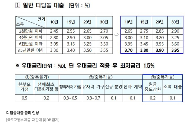 디딤돌·버팀목 대출금리 최대 0.4%p 상승, 청약저축 금리도 조정