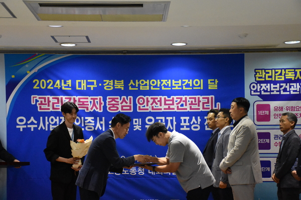 삼구건설은 지난 11일 대구지방고용노동청에서 열린 ‘2024년 관리감독자 중심 안전보건관리 유공자 표창 시상식’에서 포항 득량 삼구트리니엔 시그니처 신축공사현장 김재영차장이 고용노동부장관 표창을 수상했다고 밝혔다.