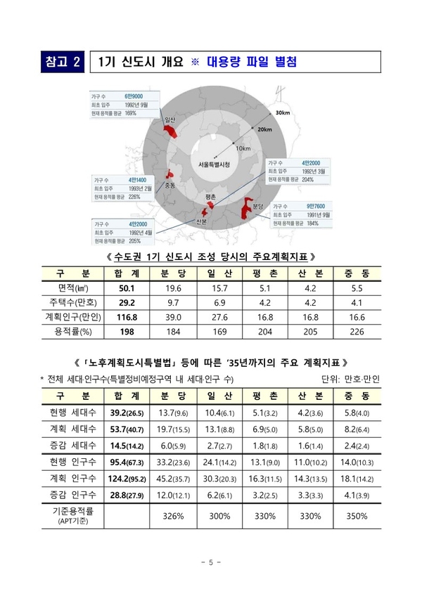 이어 일산이 10만4천호에서 13만1천호, 중동 5만8천호에서 8만2천호, 평촌 5만1천호에서 6만9천호, 산본 4만2천호에서 5만8천호로 계획됐다.