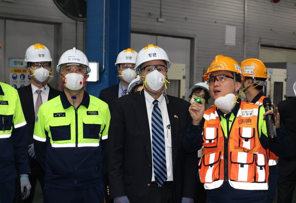 필립 골드버그 주한미국대사가 포항 블루밸리 국가산단에 위치한 포스코퓨처엠[003670] 인조흑연 음극재 공장을 찾아 생산 현장을 확인했다.