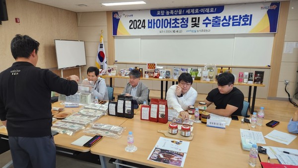 지난달 4일에는 흥해 농업인교육복지관에서 ‘2030년 농식품 수출 300억 달성’을 위해 미국, 캐나다, 아랍에미리트(UAE) 3개국에서 초청된 해외 바이어와 지역 14개의 신선 농산물 및 농수특산물 가공업체 간의 해외 수출상담회를 가졌다.