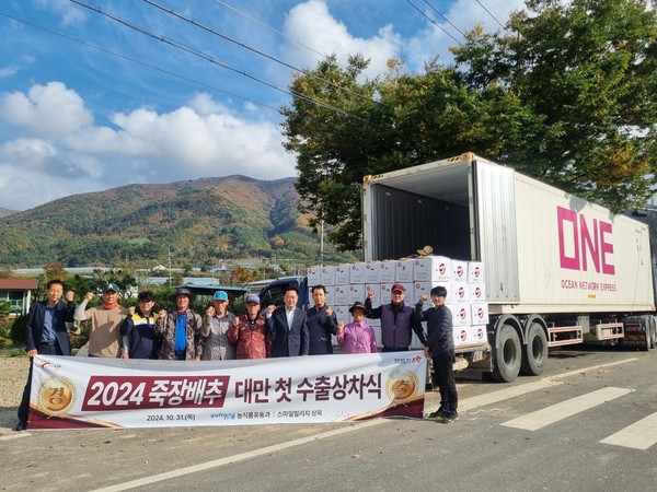 지난달 31일, 죽장면 상옥 지역에서 생산된 배추가 대만과 캐나다로 향하는 수출길에 올랐다.
