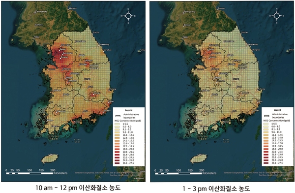 본 연구의 가장 큰 의의는 GEMS로 수집한 자료를 활용해 시간대별로 달라지는 고농도 지역을 확인하고, 이를 바탕으로 국민들의 시간대별 이산화질소 노출 수준을 훨씬 정확하게 평가했다는 것이다.
