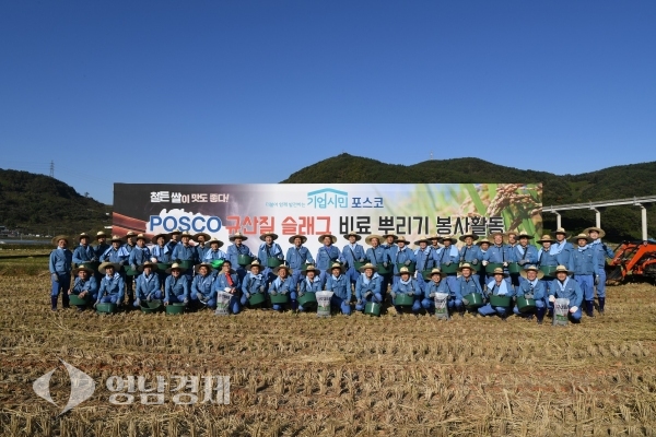 포스코 최정우 회장을 비롯한 임직원 50명은 지난 30일 전남 광양시 진월면에서 ‘규산질 슬래그 비료 뿌리기 봉사활동’을 실시했다. 최정우 회장은 이날 “포스코의 철강 부산물인 슬래그가 맛 좋은 쌀을 만드는 친환경 비료로 새로 태어나 농가소득 증대는 물론 토질 개량과 온실가스 감축에도 기여할 수 있을 것”이라며 “앞으로 포스코와 농민들, 중소 비료제조사가 상생할 수 있게 관련 지원을 아끼지 않을 것”이라고 덧붙였다.