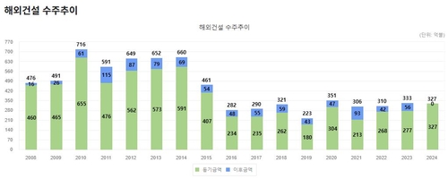 이는 2020년 이후 5년 연속으로 연간 300억 달러를 상회하는 성과다. 해외 건설 수주액은 2010년 716억 달러로 호황기의 정점을 찍은 후 미중 무역 갈등과 중동 지역 발주 감소 등의 영향으로 2019년 223억 달러까지 하락했었다.