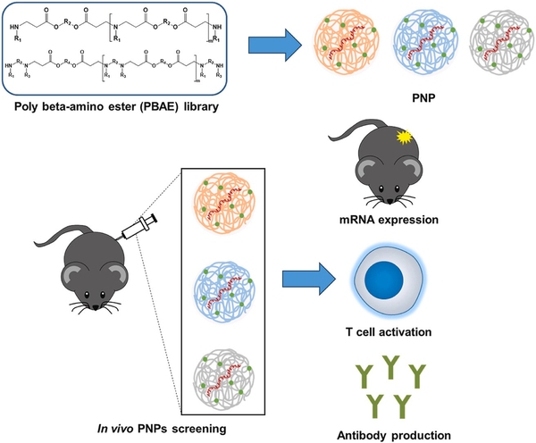 연구팀은 이번 연구에서 55종의 PBAE 고분자를 합성하고 이를 활용해 새로운 고분자 나노입자(PNPs)를 설계했다.