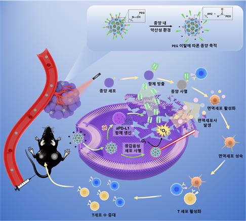 ‘항체 생산과 방출’, ‘활성산소를 통한 종양 제거’라는 이중 메커니즘을 통해 면역 반응을 폭발적으로 증폭시키며 치료 효과를 극대화하는 것이다.