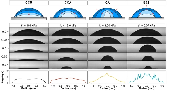 그 결과, 일반적인 대기압 조건에서는 보지 못한 새로운 액적 증발 패턴이 나타났다.